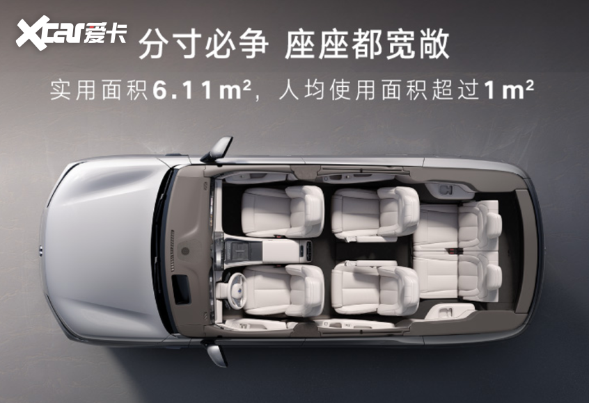 为满足多成员家庭的空间需求,腾势N8L以长宽高5200*1999*1820mm,3075mm的轴距打造出6.11㎡套内面积,实现人均超1㎡、三排一样大”的空间布局。结合超1.3米车内垂直高度,即便六个1.8米高个子成年人乘坐也非常宽敞。