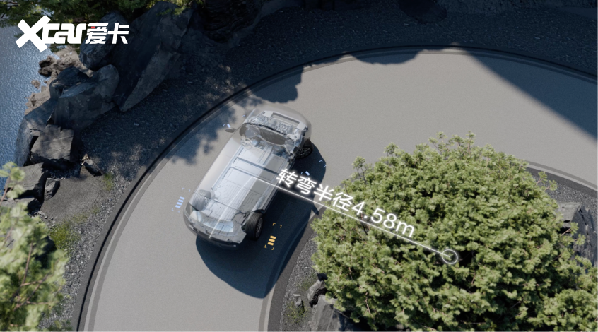 动力上,凭借“插混专用2.0T高效发动机+三电机”组成的强大动力系统,零百加速仅需3.9秒。制动系统采用六活塞定钳,实现35.4米的优异刹车距离,确保强劲动力收放自如。后轮独立转向技术的应用,让新车实现 4.58米的同级最小转弯半径,灵活性优于A0级小车,窄路调头、停车场挪车更从容。